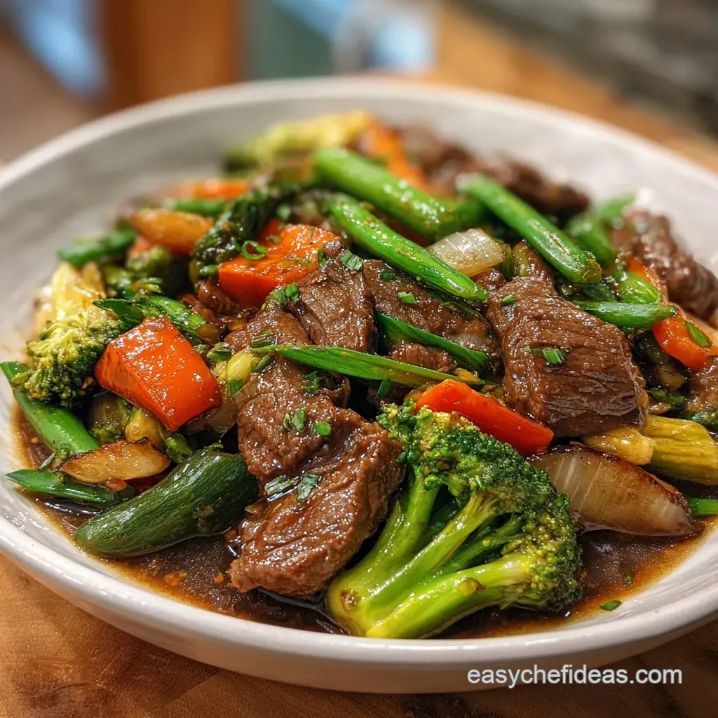 - Flavor/Texture Hook: Silky, tender beef contrasted with a crisp, colorful vegetable medley in a glossy ginger garlic glaze.