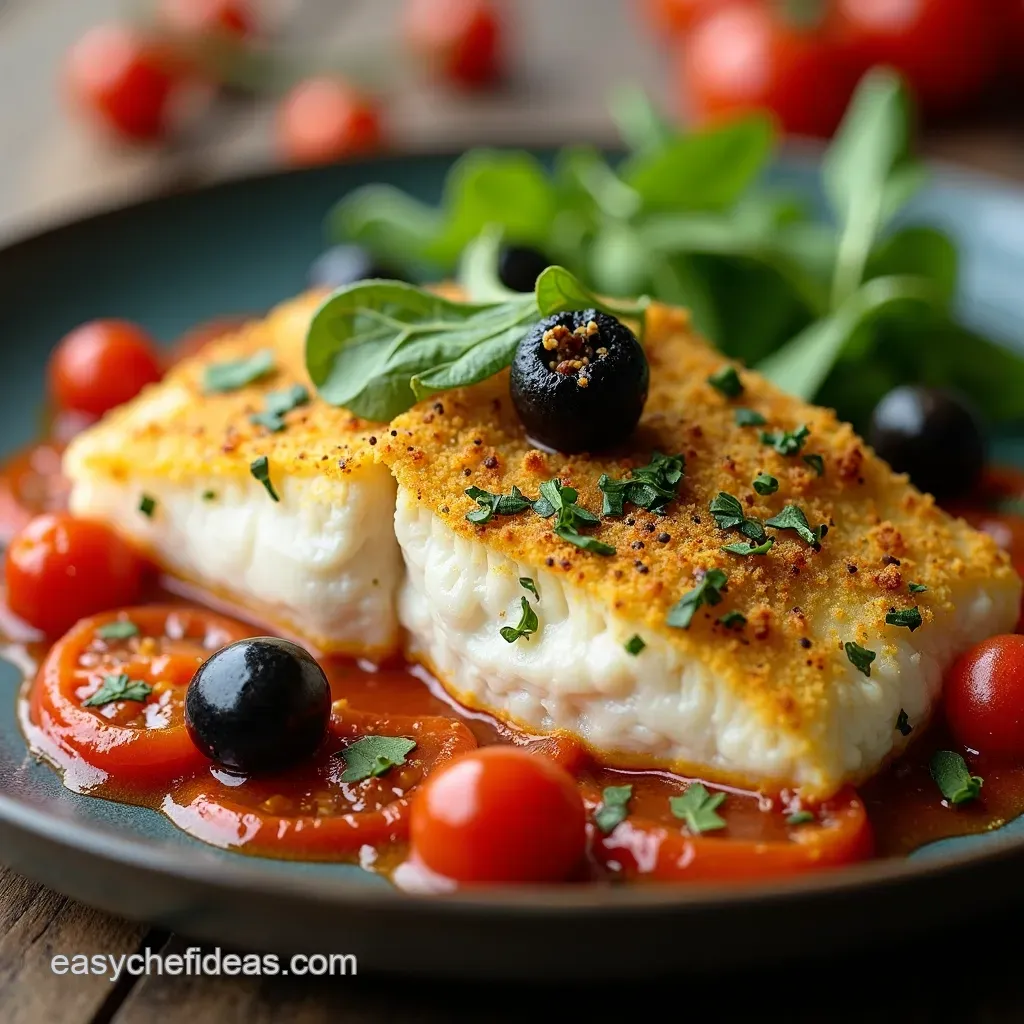 Sunshine Baked Cod with Olives Tomatoes and Lemonherb Crust