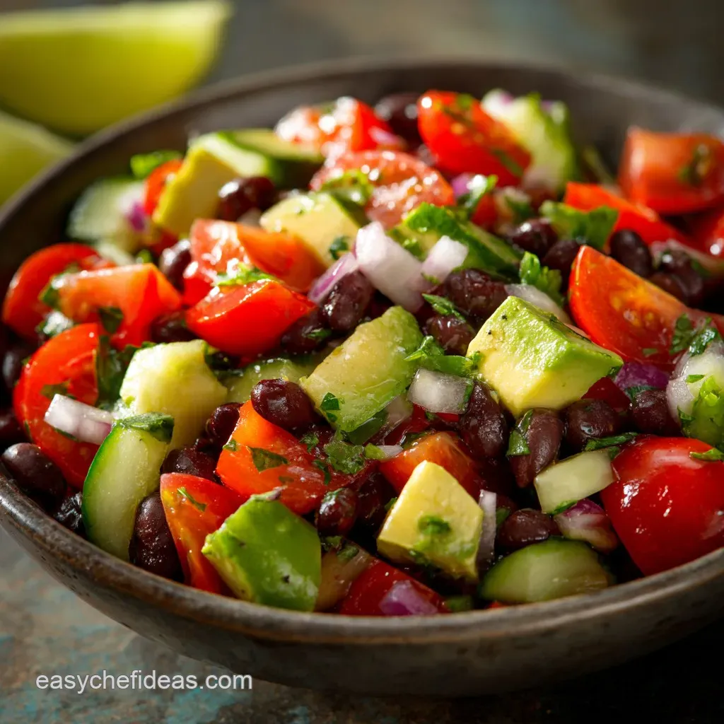 Black Bean Avocado Cucumber and Tomato Salad with Zesty Lime Vinaigrette