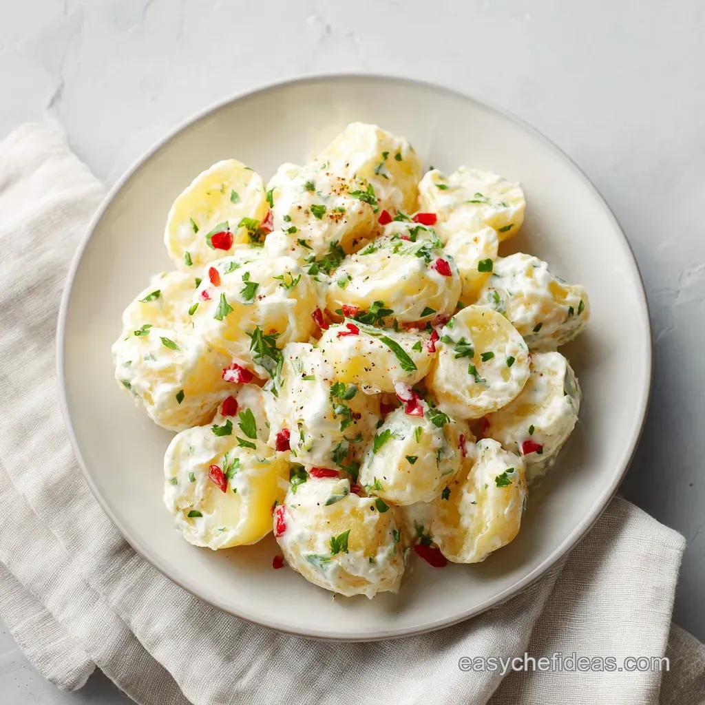 Yukon Gold potatoes, mayonnaise, and fresh aromatics form the foundation. This recipe relies on a specific blend of 3 lbs potatoes, 1 cup mayo, 1/4 cup sour cream, 2 tbsp Dijon mustard, hard boiled eggs, celery, red onion, sweet pickles, and fresh dill.