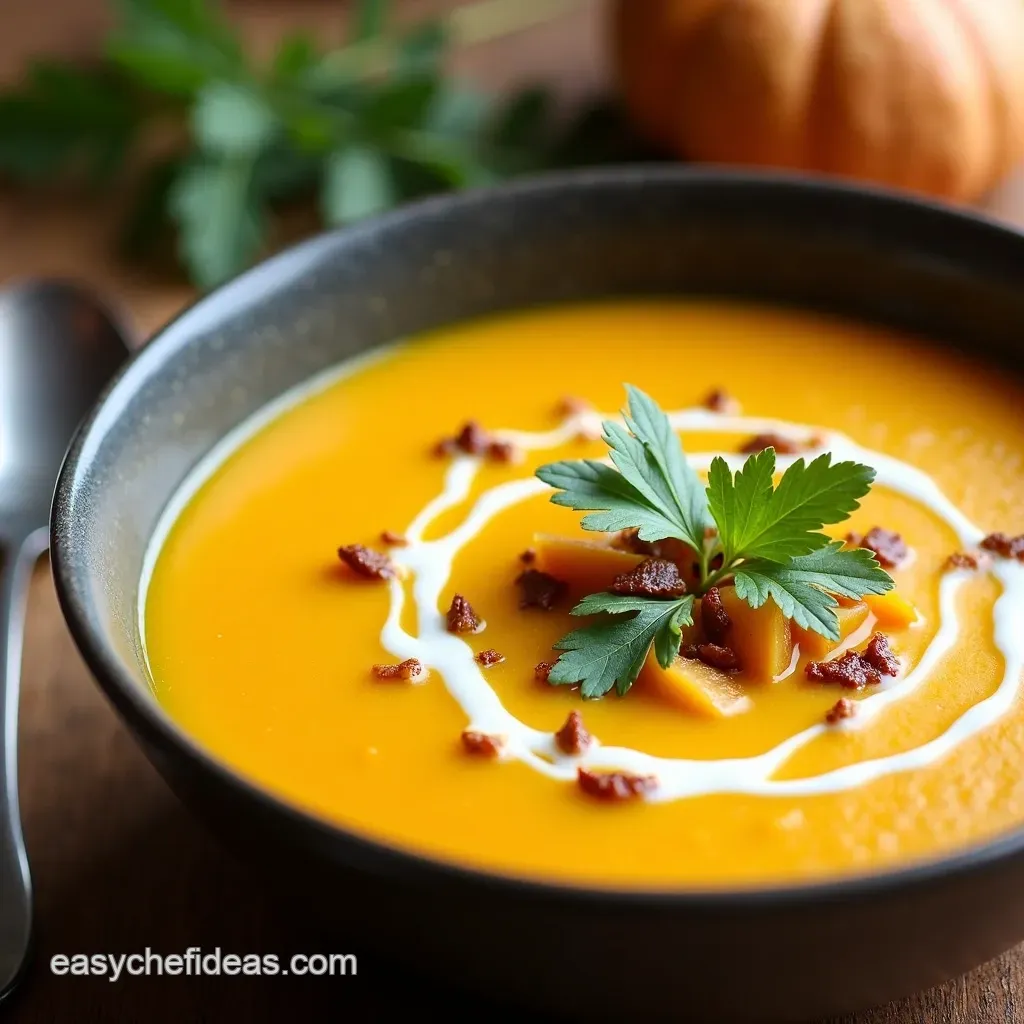 Okay, right then, let's talk benefits. Butternut squash is packed with Vitamin A, great for your skin and eyes. This soup is perfect for a cozy night in.