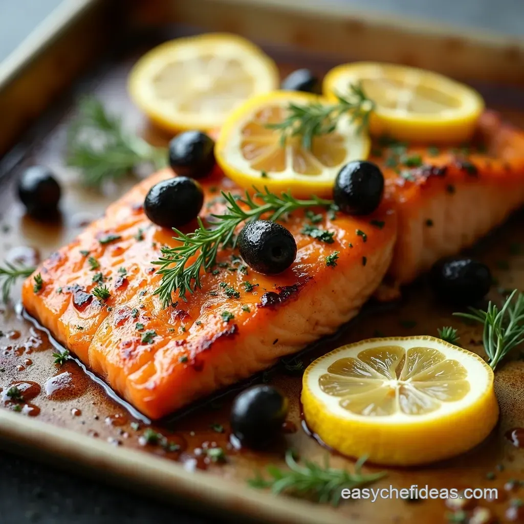 Sundrenched Sheet Pan Salmon with Lemon Olives and Herbs