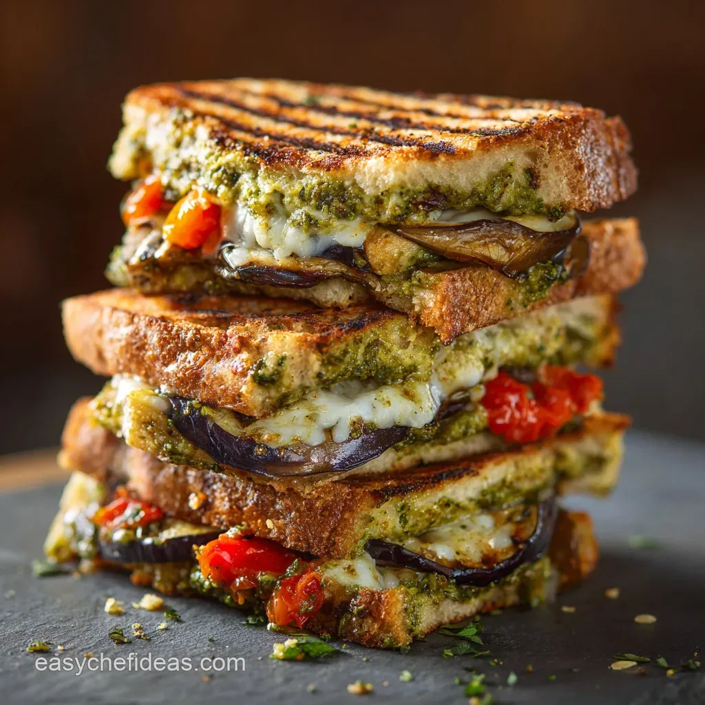 The success of this Eggplant Panini with Pesto hinges entirely on the contrasts we've engineered. We have the soft and savory center the tender eggplant and melted mozzarella.