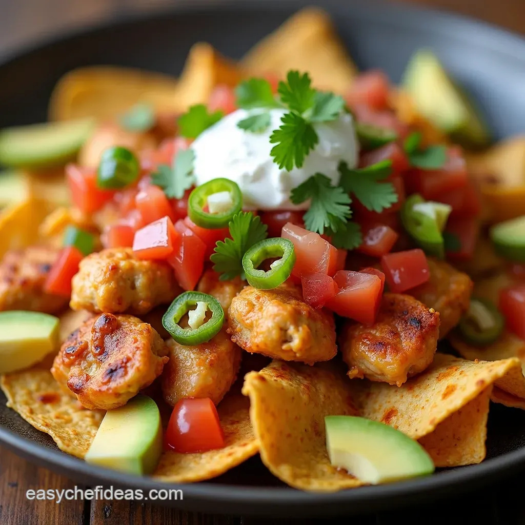 Nachos can be a bit of a calorie bomb, so portion control is key! To lighten them up, use leaner chicken, reduced fat cheese, and plain Greek yogurt instead of sour cream. Load up on the veggies for added fiber and nutrients.