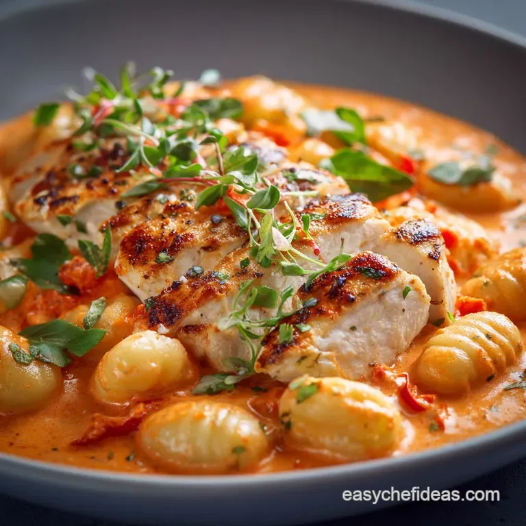 Gnocchi with Grilled Chicken in Roasted Red Pepper Sauce: Sun-Kissed Creamy