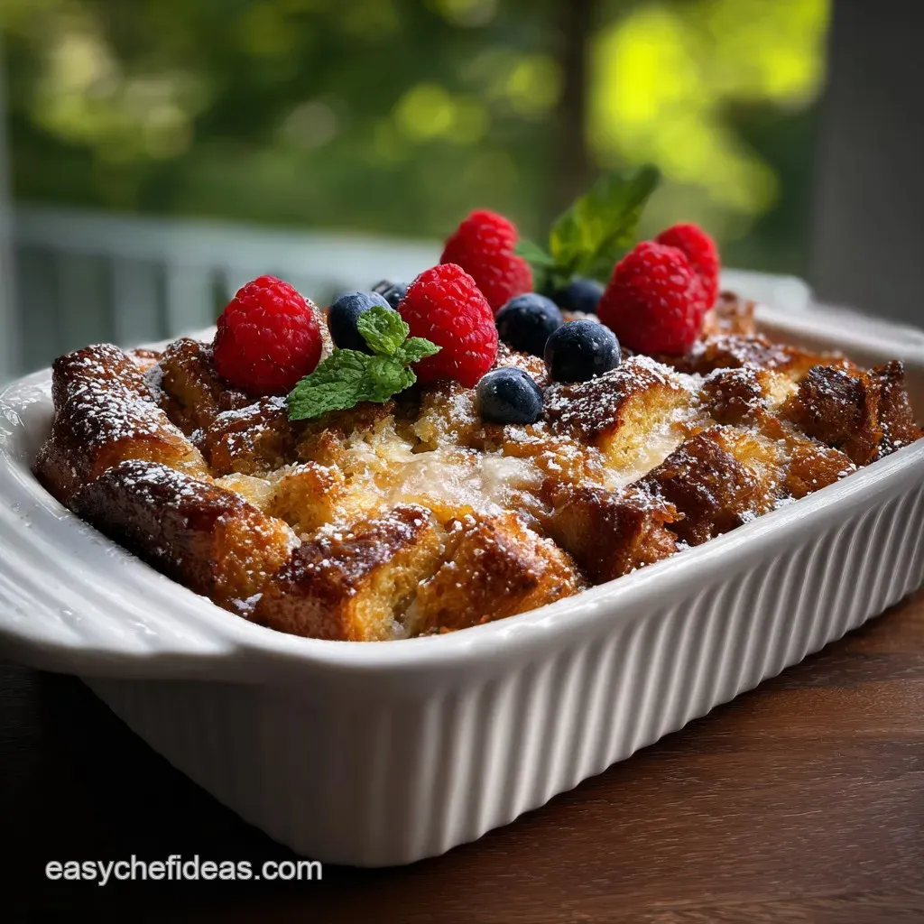 - Berry Burst: Fold 1.5 cups of fresh blueberries into the bread cubes before pouring the custard.