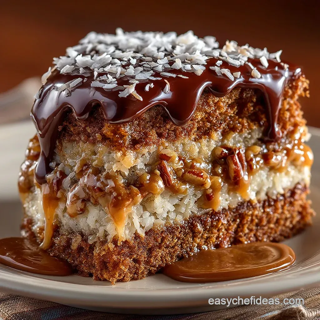 The moment you encounter a slice of Traditional German Chocolate Cake , you know you are experiencing a true American classic. Despite its name, this dessert is not a European export; it is a beloved piece of US culinary history known for its impossibly moist chocolate layers and signature sticky, coconut pecan topping.