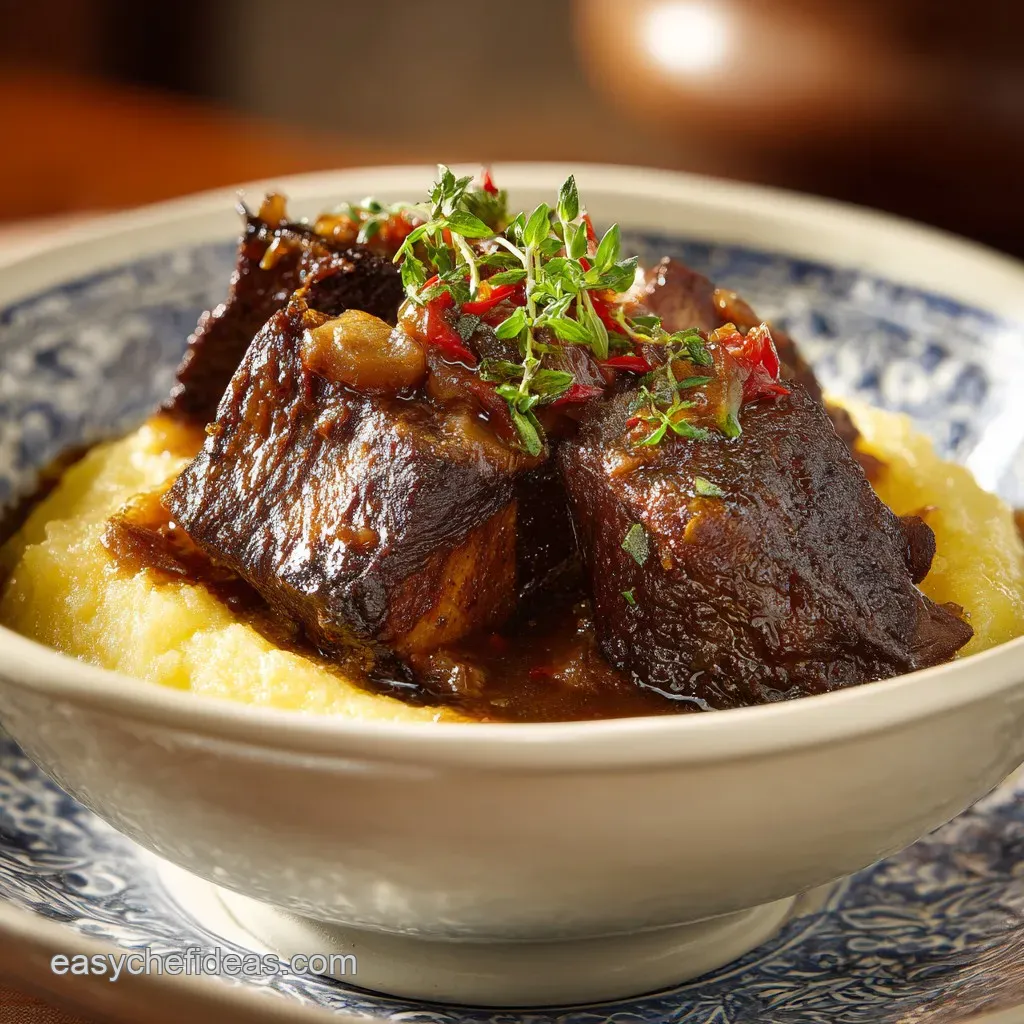 I usually pair these ribs with something that can soak up that velvety sauce creamy polenta, garlic mashed potatoes, or even a thick slice of crusty sourdough bread.