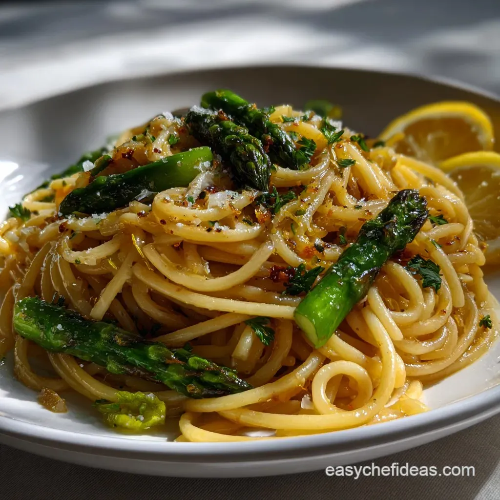 Acidic Brightness: Lemon juice (30ml) provides more than just flavor; the low pH breaks through the richness of the 3 tbsp (42g) Unsalted butter, cleaning the palate between bites of this zesty Pasta with Asparagus.