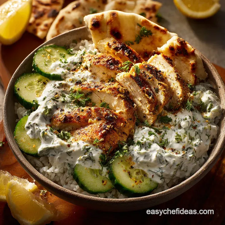 This strong marinade is then beautifully countered by the cooling, creamy Tzatziki. This essential condiment provides the smooth textural contrast and fresh flavor from dill and cucumber, completing the quintessential Greek Chicken Taziki Bowl experience.