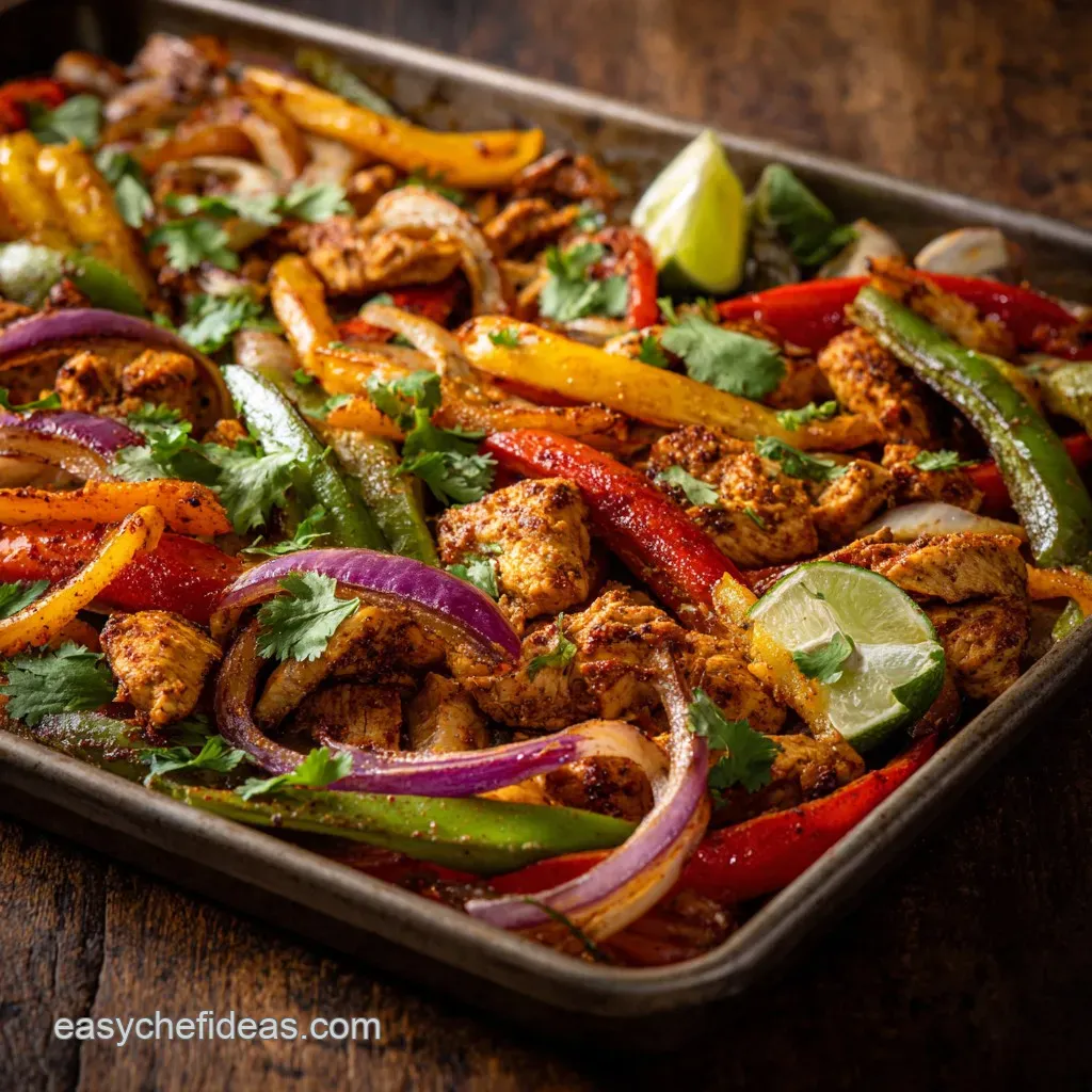 Allow the Sheet Pan Chicken Fajitas to rest directly on the tray for 5 minutes this resting period is vital, allowing the chicken juices to redistribute before serving. Serve the sizzling contents directly from the pan, paired with warm tortillas and fresh cilantro garnish.