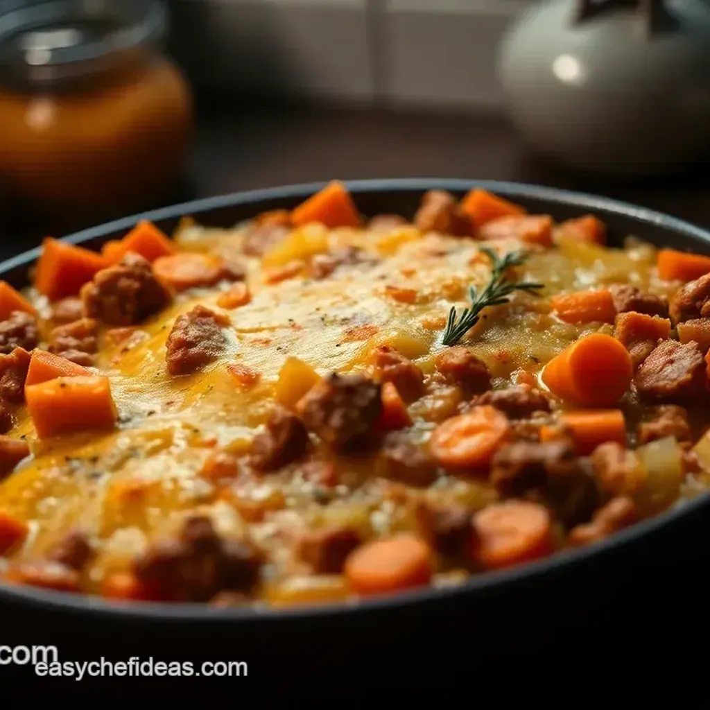 - Assemble: Transfer the meat mixture to a baking dish. Top with the sweet potato mash.