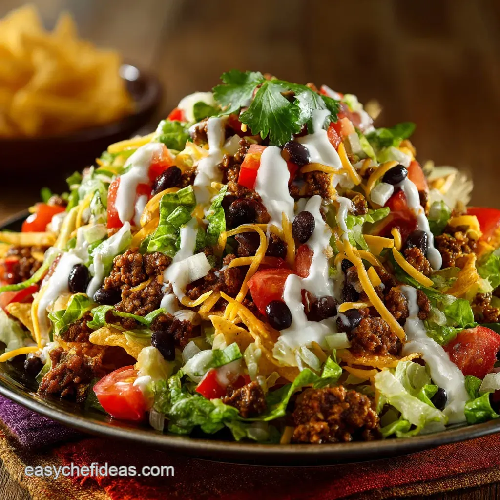 For maximum crunch and visual appeal, always layer the salad: place the cool greens first, then the warm beef, and finally the dressing, cheese, and chips right before the troops dig in this prevents wilting.